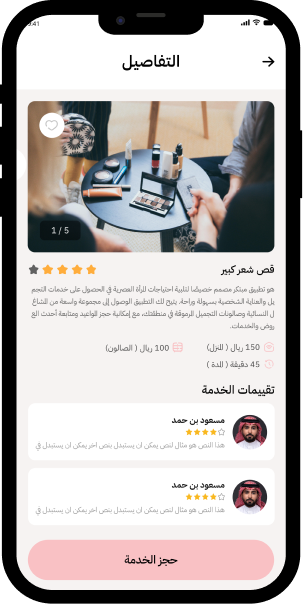 تطبيق ممتاز لتنسيق مواعيد التجميل. سهولة في الاستخدام، وخدمات متنوعة. أنصح الجميع بتجربته."